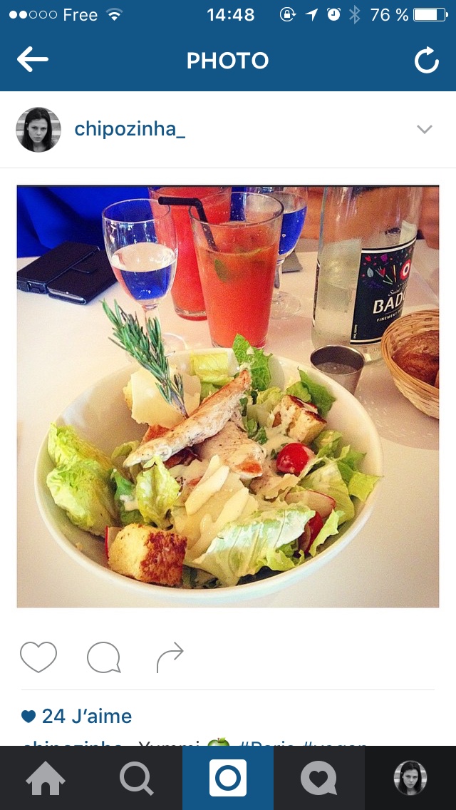 Fort copieuse et croquante, c'est sĂ»rement l'une des meilleures salades que j'ai mangĂ©e (sans ĂȘtre une pro de la salade non plus ahah), sans parler de ma boisson, ni trop sucrĂ©e, ni trop amĂšre!